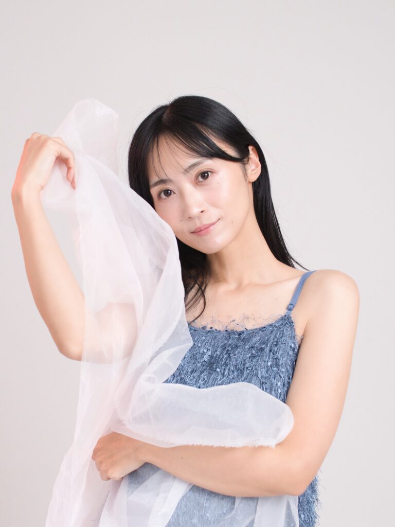 照明で背景などに薄くカラー効果。モデルの宣材写真撮影。